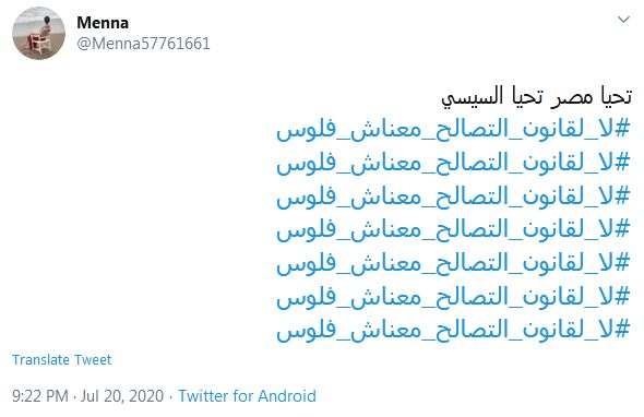 ولأن السيسي قرر ابتداء أنه لو بيده الأمر لجعل من يتحدث في التليفون يدفع (المتصل والمستقبل) ورفع شعار ما زال صوت قرقعته في آذان المصريين “هتدفع يعني هتدفع” فكان هاشتاج “لا لقانون التصالح معناش فلوس”.