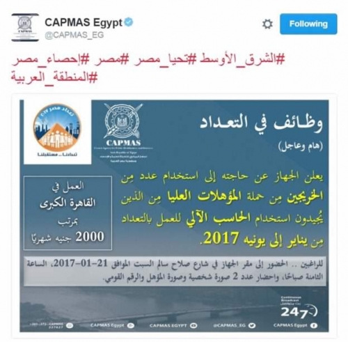 في يناير الماضي، أعلن الجهاز المركزي للتعبئة والإحصاء البدء في التعداد السكانى، وهو حدث يقام كل 10 أعوام؛ وأعلن الجهاز عن حاجته لباحثين ومعاونين للمشاركة في التعداد السكاني “مصر 2017” بأجر شهري 2000 جنيه، لكن الحقيقة غير ذلك.
