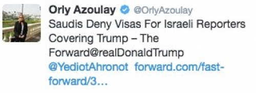 وقالت القناة العاشرة بالتلفزيون الإسرائيلي إن السعودية رفضت منح تأشيرة دخول لصحفيين صهيونيين ضمن الوفد الصحفي المرافق للرئيس ترامب الذي يزور المملكة غدًا السبت.