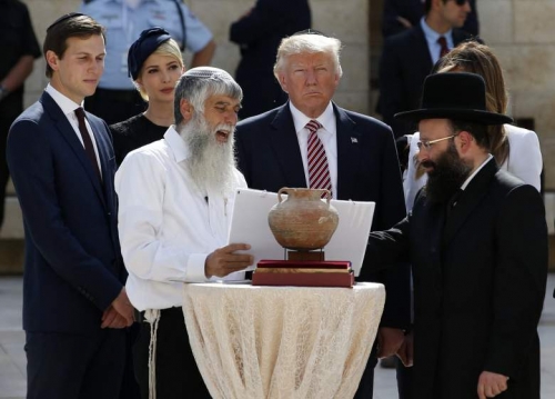 وزار الرئيس الأمريكي دونالد ترامب، البلدة القديمة بالقدس، وقام بوضع يده على الجدار القديم، ورافق ترامب إلى ساحة الجدار صهره اليهودي جاريد كوشنر، مستشاره لعملية السلام في الشرق الأوسط، الذي ارتدى هو الآخر القلنسوة اليهودية.