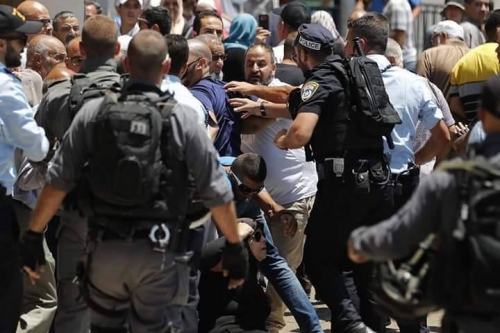 ويرفض الفلسطينيون الدخول إلى المسجد الأقصى “المحاصر” بالبوابات الإلكترونية التي وضعتها شرطة الاحتلال الإسرائيلية.