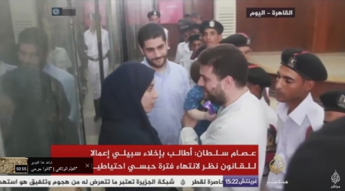 وطالب أسامة” بتمكينه من حقوقه كسجين سياسي، والسماح له بالحديث بحرية وأمان أمام المحكمة، واستطرد: “عايز أصلي”.