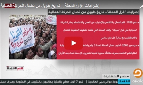 يواصل 16 ألف عامل بشركة غزل المحلة التابعة للشركة القابضة لصناعات الغزل والنسيج بالغربية إضرابهم لليوم الثامن على التوالي؛ احتجاجا على تجاهل رئيس الانقلاب عبدالفتاح السيسي وحكومته واللجنة الوزارية المشكلة من وزراء قطاع الأعمال والقوى العاملة والاستثمار والصناعة، مطالبهم المتمثلة فى صرف الحوافز والعلاوات المتأخرة».