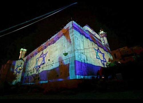 امتهن العدو الصهيوني حرمة المسجد الإبراهيمي بمدينة الخليل، بعدما احتفل مغتصبون صهاينة في رحابه بالرقص والموسيقى وإطلاق الألعاب النارية، ومن ذلك لفّهم المسجد رمزيا بألوان علمهم مستخدمين أنوار الليزر.