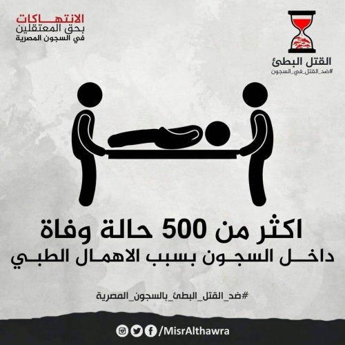 وسط تخاذل المؤسسات المعنية.. 500 شهيد ضحايا القتل الطبي بسجون الانقلاب …