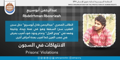 من جانبها حملت المنظمة السويسرية لحقوق الانسان، سلطات الانقلاب المسئولية الكاملة عن سلامة الطالب عبد الرحمن أبو سريع، مطالبة بتلقيه الرعاية الصحية العاجلة.