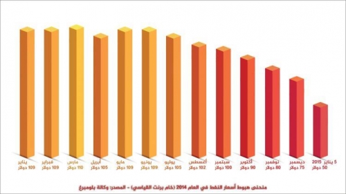 مسلسل الهبوط بدأ منذ يونية 2014، فقد شهدت أسعار النفط فى الأسواق العالمية منذ يونيو/حزيران 2014 هبوطا مطردا، إذ كان سعر خام برنت فى حدود 110 دولارات للبرميل، لكنه انحدر فى الأيام الأولى من يناير/كانون الثانى 2015 إلى ما دون خمسين دولارا، ويُعزى هذا الهبوط إلى ما يسمى “أساسيات السوق”، متمثلة فى التفاعل بين العرض والطلب، فضلا عن قوة العملة الأميركية (الدولار) وتأثير نشاط المضاربين فى الأسواق، لكن بعض المحللين يشكك فى هذا الأمر ويربطه بعوامل سياسية .