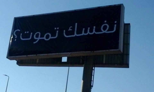 أُطلقت مؤخرا حملة غامضة تحت عنوان “نفسك تموت.. نفسك تنتحر؟”، بدأت من كورنيش الإسكندرية، حيث فوجئ أهالى المدنية بلافتات وبانرات متشحة بالسواد، كُتب عليها عبارات مختلفة باللون الأبيض، منها “نفسك تموت”، “عاوز تنتحر”، ورغم غموض الحملة ورفض شركة الدعاية التى دشنت الحملة فى الإفصاح عن أسبابها، واكتفت بتأكيدها أن الحملة إنسانية، وأنه سوف يتبين الهدف منها خلال الأيام القادمة، إلا أن سماح الأجهزة الأمنية بتعليق هذه البانرات يثير العديد من علامات الاستفهام.