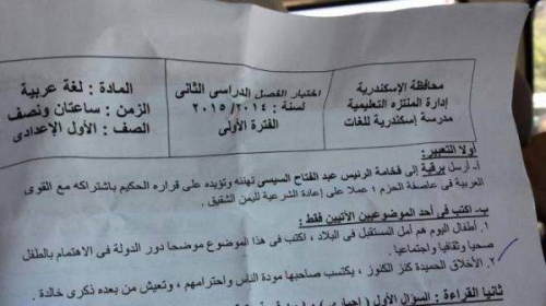 “هنئ السيسي بعاصفة الحزم” سؤال التعبير بإعدادية الإسكندرية!