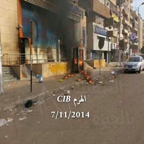 وعلى الفور أعلنت حركة تطلق على نفسها “المقاومة الشعبية بالجيزة” مسئوليتها عن حرق وتدمير واجهة بنك CIB في منطقة الهرم، انتقاما منهم لما تقوم بالشركة ضد طلاب الجامعات ورفضا لتواجدهم في الجامعات.
