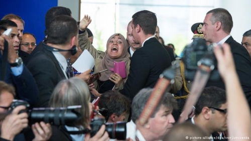 فاجأت “فجر العادلي” الحضور بمهاجمتها لـ”عبد الفتاح السيسي” خلال مؤتمره الصحفي، الذى عقد مع المستشارة الألمانية أنجيلا ميركل فى العاصمة الألمانية برلين، الأربعاء؛ حيث هتفت ضده قائلة: “أنت قاتل.. أنت نازي.. أنت فاشي”.