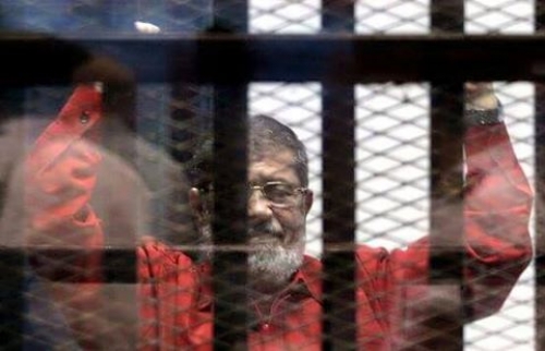 وجَّه الرئيس محمد مرسي خلال نظر جلسات قضية التخابر مع قطر التحية للمحامين والموجودين والمعتقلين في الحجز المجاور له، فى أول ظهور له بالبدلة الحمراء، عقب حكم الإعدام الصادر بحقه في قضية الهروب من وادي النطرون.