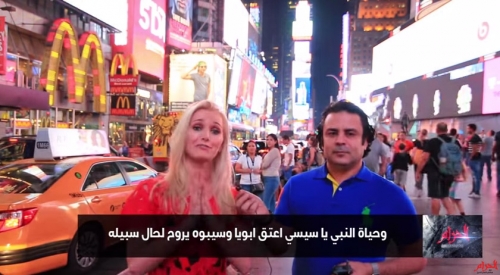 استمرارا للسخرية من قائد الانقلاب عبد الفتاح السيسي، أجرى الإعلامي سامي كمال الدين لقاء مع مواطنة أمريكية تدعى “كريستينا” قال أنها ابنة قائد الأسطول السادس الأمريكي التي زعم إعلام العسكر أسره في المياه الإقليمية المصرية.