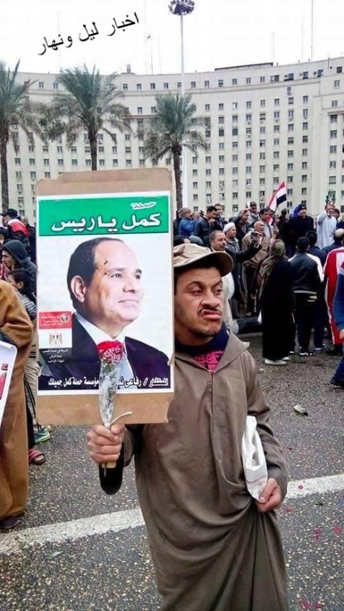 وفي البداية، نسي مؤيدو السيسي، ونساؤهم، أنهم يحتفلون بذكرى ثورة 25 يناير، فلم يردد أحدهم، ولو على سبيل الخطأ، أي شعار من شعاراتها، كما أنهم لم يرفعوا صور شهدائها، من “الورد اللي فتَّح في الجناين”، بحسب تعبير صحيفة “المصري اليوم” حينها.