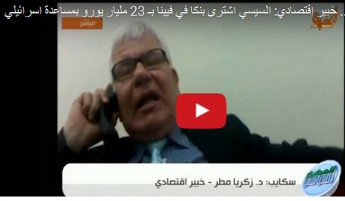 كشف الخبير الاقتصادي الدكتور زكريا مطر، عن شراء المشير عبد الفتاح السيسي قائد الانقلاب العسكري بنكًا في فيينا بقيمة 32 مليار يورو بمساعدة وسيط إسرائيلي.