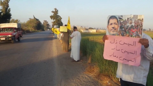 بلافتات التهنئة بالعام الهجري الجديد للرئيس محمد مرسي والأحرار في سجون الانقلاب نظم ثوار فاقوس بالشرقية صباح اليوم سلسلة بشرية ووقفة احتجاجية امتدت على الطريق الواصل لمدينة القنطرة، ضمن مظاهرات “غضب الغلابة قادم” في إطار موجة “ارحل” الممتدة التي دعا لها التحالف الوطني لدعم الشرعية استمرارًا للنضال والحراك الثوري المناهض للانقلاب العسكري وجرائمه.