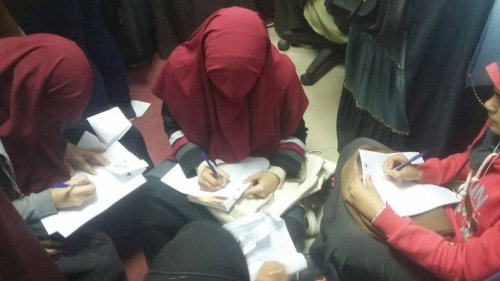ولم يتسع مكتب شكاوى المجلس القومي لحقوق الإنسان فجلست زوجات المعتقلين أرضا يكتبن ديباجة باسم المعتقل ورقم الزنزانة وما تعرض له ثم التغريب القسري وحفلات التعذيب التي تعرضوا لها في السجون التي نقلوا إليها في سجن جمصة وسجن المنيا الجديد وسجن وادي النطرون.