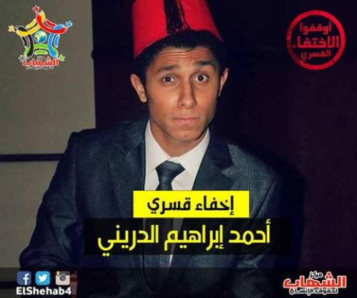 دان مركز الشهاب لحقوق الإنسان الإخفاء القسرى لـ”أحمد إبراهيم الدريني” الطالب بالفرقة الثالثة بكلية حقوق الإسكندرية، بعد القبض التعسفي عليه من داخل لجنة الامتحان بالامس واقتياده لجهة غير معلومة حتى الان.