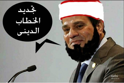 ويبدو أننا سنسمع قريبًا صوت فضيلة الإمام رئيس الانقلاب عبدالفتاح السيسي في برنامج “بريد الإسلام”، وهو يتولى الإجابة عن أسئلة المستمعين، وأول فتواه كانت حول قضية “الطلاق الشفوي”، حيث اقترح فضيلته خلال كلمته بعيد الشرطة، إصدار قانون يحتم عدم وقوع الطلاق إلا أمام المأذون فقط، ولم يستطع أي من المراقبين اكتشاف الصلة بين عيد الشرطة والطلاق!