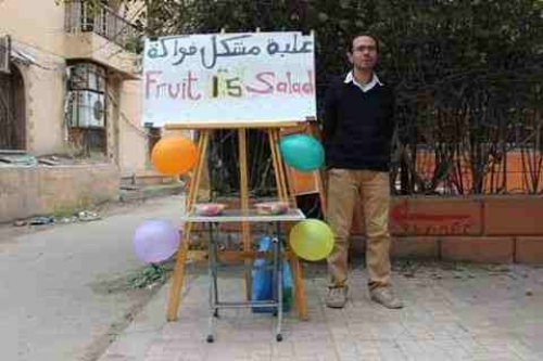 وأضاف فى تصريحات صحفية ،السبت،: “الفكرة جت من أكتر من أسبوعين، وبدأت أنفذها، بأني أجيب فواكه طازة وأقطعها وأضعها في علب بلاستيك ثم أعرضها على الزبائن، من خلال وقفتي على هذه الترابيزة في الشارع”.