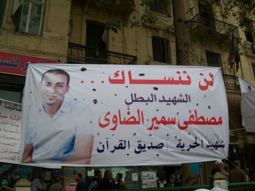 ويعد الشهيد القرآنى مصطفى الصاوى، والذى استشهد عن عمر 26 سنة، وكان يوم استشهاده هو نفس يوم ميلاده 28 يناير، وقد استشهد على كوبري قصر النيل بالرصاص المطاطي بأكثر من 25 طلقة في جسمه.