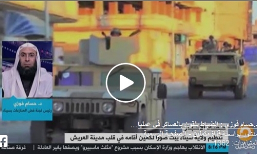 أبدى د.حسام فوزي -رئيس لجنة فض المنازعات بسيناء- رأيا مختلفا حول الأكمة التي تم تداول صورها مؤخرا في سيناء باعتبار أنها لأفراد من تنظيم “ولاية سيناء”، الذي من المفترض أن مليشيات الانقلاب تحاربه بضراوة، حيث قال إن أفراد الكمائن تابعون للجهات الأمنية ويرتدون ثياب ولاية سيناء للإيحاء بأن المسلحين يسيطرون على سيناء مما يعطى المجتمع الدولي ذريعة التدخل في سيناء.