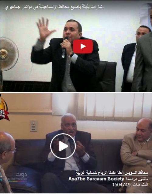 وأصر السيسي على إبقاء اللواء أحمد القصاص محافظ الإسماعيلية، لأقصى مدة رغم اعتراض أبناء المحافظة عليه، ومهاجمة الإعلاميين له، حتى أن يوسف الحسيني حلق “ظلبطة” إيفاء بوعده إن لم يعزل، وكان مثار الاعتراض إشارة بذيئة “تصبيع” تعبر عن حالة من الانفلات الأخلاقى، تتركز فى طبقات معينة، وجهة عمل مهينة، خلال حديثه مع بعضهم بانفعال شديد في مؤتمر مصغر بالمحافظة، وكان رده صادما لأهالي أبوسلطان عندما طالبوه بتوفير ميزانية لتشغيل مستشفى القرية: “أجيب لكم منين.. وكل واحد فيكم قاعد “يزرب” -أى “ينجب”- 5 و6 عيال”، وأشار بإصبعه بالطريقة السوقية.