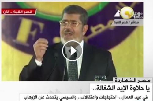 تداول نشطاء على مواقع التواصل الاجتماعي مقطع فيديو لخطاب الرئيس محمد مرسي خلال الاحتفال بعيد العمال.