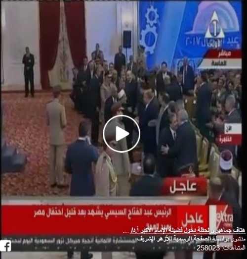 تحدى عدد من الحضور في الاحتفالية التي نظمها الاتحاد العام لنقابات عمال مصر بمناسبة عيد العمال أمس الأحد، عبدالفتاح السيسي قائد الانقلاب العسكري وأعلنوا تضامنهم مع شيخ الأزهر الدكتور أحمد الطيب ضد الهجمة الشرسة التي يشنها نظام الانقلاب العسكري.