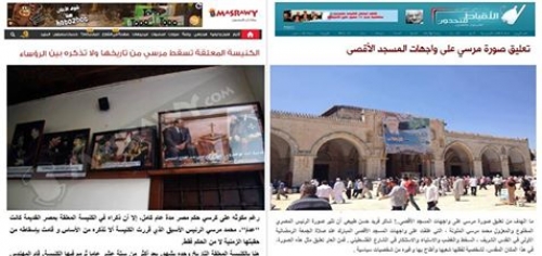 صور الرئيس مرسي مرفوعة في الأقصى محظورة في الكنيسة المعلقة
