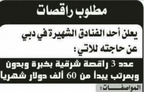 بشبه الدولة.. فرصة عمل لراقصات بـ60 ألف دولار شهريًا (صورة)